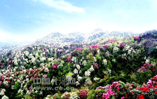 廣西金秀的圣堂山以萬畝變色杜鵑林聞名。四五月份是圣堂山變色杜鵑炫耀自己的鼎盛時(shí)節(jié)。萬畝連片變色杜鵑同時(shí)開放,樹樹繁花,令人陶醉不已。在陽光照耀下,杜鵑隨著花期變化而不斷變化花顏,由紅變紫再變白,每棵樹上紅、紫、白、黃競(jìng)相開放,競(jìng)相斗妍,在綠葉的襯托下就像一把把色彩斑斕的大花傘,山風(fēng)吹拂,花浪翻滾,自然形成浩瀚花海。