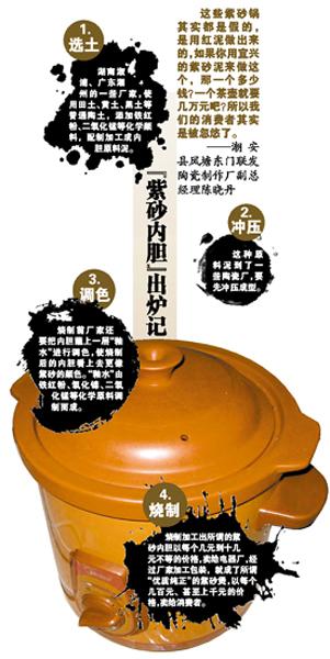 據(jù)央視《每周質(zhì)量報(bào)告》報(bào)道,近幾年,紫砂煲成了炊具市場(chǎng)上的明星產(chǎn)品,銷量也是連年上升,消費(fèi)者選擇紫砂煲看中的無外乎就是商家所宣稱的健康、營(yíng)養(yǎng)、養(yǎng)生等等概念。然而記者在調(diào)查過程中卻發(fā)現(xiàn),這種打著健康招牌的紫砂煲背后卻另有玄機(jī)。