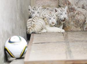 那邊南非世界杯已經(jīng)開打,而這邊紅山動物園的動物們也蠢蠢欲動。昨天,首屆動物世界杯盛大舉行,小黑猩猩、小白虎、小獼猴個個“帶球上陣”。別當真以為它們要踢球,其實,這只是園方為動物增加豐容項目,讓動物在園里生活得更健康,正值世界杯之際,園方給一些適合玩足球的動物放入了足球,供動物玩耍。