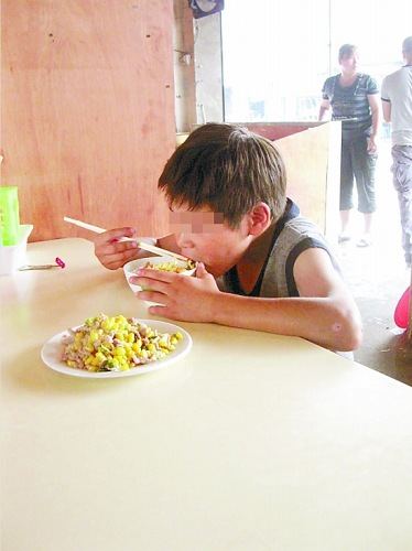 在詹阿姨的小飯館,小龍吃得好香哦。 王曉峰攝