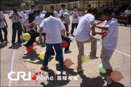 本次活動由中國駐埃及大使館贊助,埃及愛資哈爾大學(xué)中國留學(xué)生會主辦。來自埃及各個大學(xué)約300名中國各民族留學(xué)生參加了籃球、足球、踩氣球、拔河、“小馬過河”、“袋鼠夾球”等多項競技。(方文軍)