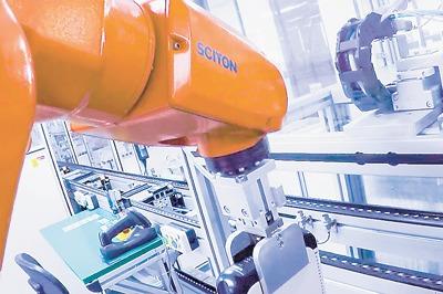 1萬多個(gè)不同種類的元器件,“搭乘”無人搬運(yùn)車,有條不紊地穿梭在218道環(huán)環(huán)相扣的產(chǎn)線中?!把b配工”“操作工”“協(xié)調(diào)員”緊密配合,每天可生產(chǎn)150個(gè)“大腦”、800多只“眼睛”、300多條“胳膊”,組裝起來的產(chǎn)品——工業(yè)機(jī)器人,經(jīng)過“質(zhì)檢員”把關(guān),就可以出廠了。