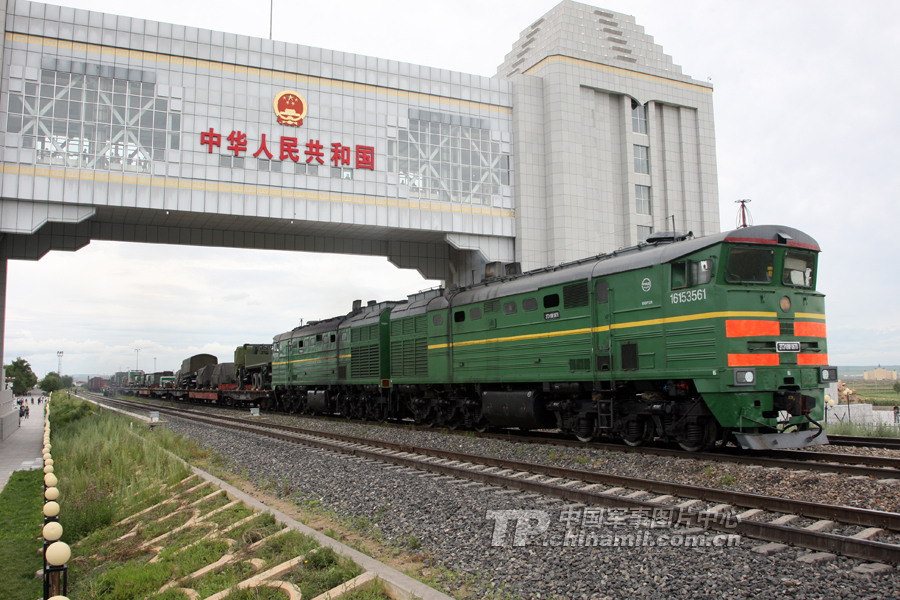 參加“和平使命—2013”中俄聯(lián)合反恐軍事演習(xí)第一列地轉(zhuǎn)專列開(kāi)出國(guó)門。曹占禮 攝