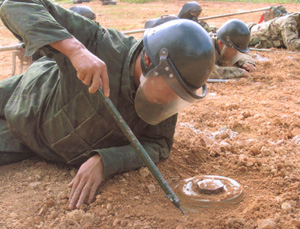 2002年12月31日,中國首次援外指導(dǎo)掃雷的14名專家圓滿完成在厄立特里亞的人道主義掃雷培訓(xùn)任務(wù)后回到北京。這不僅意味著中國的掃雷技術(shù)和方法進(jìn)一步得到了國際社會的肯定,也標(biāo)志著中國在國際人道主義掃雷援助活動(dòng)中又邁出新的步伐。解放軍報(bào)今天刊文,披露中國進(jìn)行國際人道主義掃雷援助活動(dòng)的情況。