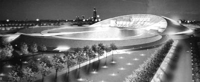 畢竟川口衛(wèi)帶來的“天鵝”也還僅僅是一個雛形,還需要和天津的設(shè)計師們不斷地磨合,力求讓“天鵝”更加完美。初步設(shè)計階段,該事務(wù)所與天津建筑設(shè)計院共同協(xié)作,雙方都派出了最精干的設(shè)計人員。中日兩國的建筑設(shè)計師們經(jīng)過3個月的交流,對原方案進(jìn)行了微調(diào),去掉了“彩虹門”、“水上咖啡廳”和“水上移動舞臺”部分,將主建筑上的曲面玻璃幕的角度進(jìn)行了微調(diào),并根據(jù)要求劃分出防火分區(qū),增加了防火疏散口,設(shè)置了防火墻等。