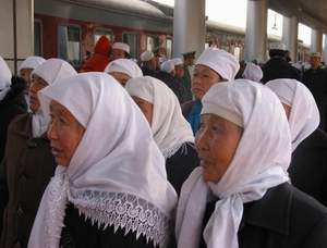 中新網1月15日電 寧夏回族自治區(qū)280多名穆斯林群眾前天(13日)啟程,赴麥加朝覲。來自寧夏各地近萬名頭戴白帽、身著節(jié)日盛裝的穆斯林群眾在銀川火車站送行。