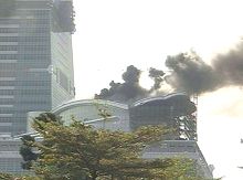 今天早上臺北101金融大樓突然傳出發(fā)生火災(zāi),火苗由大樓間的10層樓上冒出,消防局立即出動(dòng)高樓云梯車灌救,經(jīng)過約40分鐘,火勢已經(jīng)全部撲滅,