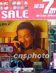 春節(jié)前夕又到了換季之時(shí),北京王府井的時(shí)裝店紛紛開(kāi)始換季打折促銷活動(dòng),一家商場(chǎng)掛出香港巨星劉德華的巨幅廣告吸引顧客。作者:杜洋
