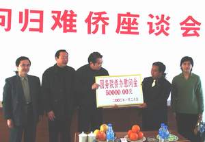 座談會(huì)上,許又聲副主任還代表國務(wù)院僑辦向平遠(yuǎn)華僑農(nóng)場贈(zèng)送了五萬元人民幣慰問金。