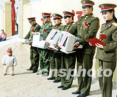 春節(jié)前夕,中國各地解放軍與民眾互動活動活躍。地處山東省棗莊市山區(qū)的解放軍軍官為當?shù)匦W捐獻計算機,以便山村里的孩子能接受到信息教育。作者:劉明祥