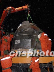 中國“神舟”四號飛船著陸場系統(tǒng)的總體設(shè)計人員,在對試驗(yàn)數(shù)據(jù)進(jìn)行仿真分析后在北京表示,中國載人航天著陸場系統(tǒng)已經(jīng)具備執(zhí)行高安全、高可靠性飛船搜索回收和航天員救生的能力,能夠滿足“神舟”號飛船載人飛行任務(wù)的要求。圖為“神舟”四號飛船返回艙回收的實(shí)況。作者:孫陽