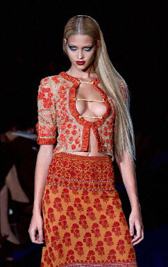 1月20日,時(shí)裝模特在巴黎展示2003年新款的春夏時(shí)裝。為聲援反艾滋病活動(dòng),法國(guó)的服裝設(shè)計(jì)大師Jean-Paul Gaultier和前超級(jí)名模Ines de la Fressange將在1月22日舉辦一次慈善晚會(huì),為艾滋病研究和防治募集資金。