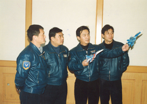 老一代試飛員善于學習和鉆研的光榮傳統(tǒng),今天在新一代試飛員身上進一步得到了弘揚光大。去年10月,副大隊長畢紅軍到西北大漠進行導彈定型試飛,這是一項高風險試飛課目。稍有不慎,就會機毀人亡。為防止意外,畢紅軍在翻閱大量資料的同時,還與科研人員一道,反復研究打導彈的最佳方案,經過認真準備,他摸索出了打迎頭和尾后發(fā)射導彈的規(guī)律。正式試飛那天,他沉著地按照飛行指令,準確進入攻擊空域,迅速捕捉目標,輕輕按動發(fā)射電鈕———“轟轟!”長空炸響一聲霹靂,導彈直中靶心,靶機凌空爆炸!笆装l(fā)命中,試驗成功!”之后,他又在不同條件下發(fā)射了7枚導彈都準確擊中目標。創(chuàng)新是試飛員前進的動力,也是他們永恒追求的目標。大隊創(chuàng)建50多年來,他們先后推出了國產高性能發(fā)動機、打新型導彈等600多項科研成果,其中有400多項填補了我國航空工業(yè)的空白,有的成果還處于世界領先地位。