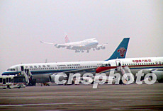 臺(tái)灣中華航空公司包機(jī)返鄉(xiāng)的客機(jī)二十六日清晨飛抵上海浦東機(jī)場(chǎng)(2)作者:張宇
