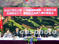 美國華盛頓僑界二十五日在中國駐美使館就江澤民主席關(guān)于發(fā)展兩岸關(guān)系,推進(jìn)祖國和平統(tǒng)一八項主張發(fā)表八周年進(jìn)行座談。中國駐美大使楊潔篪(中)在發(fā)表講話時強(qiáng)調(diào),實現(xiàn)中國和平統(tǒng)一有助于中美關(guān)系穩(wěn)定、健康、持續(xù)發(fā)展。作者:余東暉