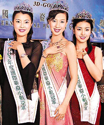 中新網(wǎng)1月27日電 “2003年度國際華裔小姐”前晚在一片爆冷聲中誕生,昨日即馬不停蹄地在香港出席領(lǐng)獎(jiǎng)活動。