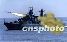 中央軍委授予海軍哈爾濱艦“海上先鋒艦”榮譽(yù)稱號命名大會(huì)二十六日在青島某軍港舉行。海軍哈爾濱艦是中國國產(chǎn)某新型導(dǎo)彈驅(qū)逐艦首艦。圖為哈爾濱艦發(fā)射反艦導(dǎo)彈。作者:王松岐
