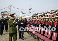 中央軍委授予海軍哈爾濱艦“海上先鋒艦”榮譽(yù)稱號命名大會(huì)二十六日在青島某軍港舉行。總政治部、海軍及艦隊(duì)領(lǐng)導(dǎo)看望哈爾濱艦官兵。作者:王松岐