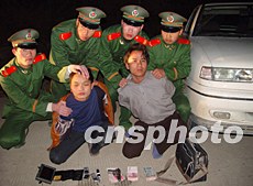二十八日下午,五名持槍劫匪在福建長樂市持槍搶劫得逞后駕車逃逸,設(shè)卡攔截的長樂松下邊防官兵駕車緊追并當(dāng)場(chǎng)奮勇擒獲兩名持槍嫌犯,繳獲自制手槍一支(內(nèi)裝兩發(fā)子彈)、匕首、轎車和手機(jī)及贓款兩萬余元人民幣。當(dāng)晚十二時(shí)許,同案在逃的另三名劫匪在福清市落網(wǎng)。作者:陳如冰