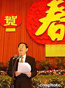 中共中央、國(guó)務(wù)院今天上午在人民大會(huì)堂舉行春節(jié)團(tuán)拜會(huì)。江澤民、胡錦濤等多位領(lǐng)導(dǎo)人同北京各界人士四千五百多人歡聚一堂,辭舊迎新,共慶中國(guó)人民的傳統(tǒng)節(jié)日。朱镕基在團(tuán)拜會(huì)上講話(huà)。