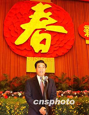 中共中央總書(shū)記胡錦濤主持團(tuán)拜會(huì)。他代表中共中央、國(guó)務(wù)院,向全國(guó)各族人民,向廣大工人、農(nóng)民、知識(shí)分子和干部,向人民解放軍指戰(zhàn)員、武警官兵和公安干警,向各民主黨派和全國(guó)工商聯(lián)、各人民團(tuán)體和各界人士,表示節(jié)日的問(wèn)候。他向香港特別行政區(qū)同胞、澳門(mén)特別行政區(qū)同胞、臺(tái)灣同胞、海外僑胞,致以良好的祝愿,并向關(guān)心和支持中國(guó)現(xiàn)代化建設(shè)的國(guó)際友人,表示衷心的感謝。他祝大家新春愉快,身體健康,闔家幸福!