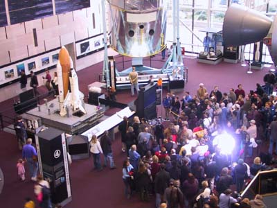 眾多美國人在國家宇航博物館觀看哥倫比亞失事專題報道
