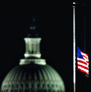 特寫:今天美國悲傷 星條旗在陰風(fēng)愁云中舒卷(圖)