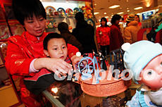 北京一位放寒假的小學(xué)生節(jié)日在商場(chǎng)里專心地玩《哈利.波特》升空游戲,以愉快的心情迎接新年。作者:張勤