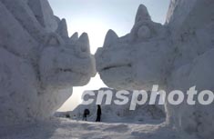 冰天雪地的長春凈月潭為新春游覽設(shè)立雪雕恐龍世界,營造北國侏羅紀(jì)傳奇。作者:賈國榮