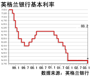 中新網(wǎng)2月9日電 英國中央銀行英格蘭銀行周四宣布將基本利率下調(diào)0.25個(gè)百分點(diǎn),這是英格蘭銀行14個(gè)月來首次調(diào)整利率。