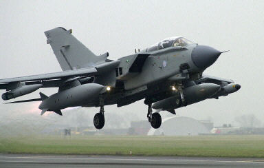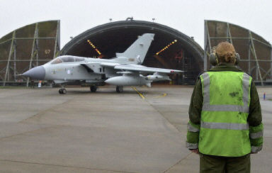 10日,英國皇家空軍“旋風(fēng)”式GR4型戰(zhàn)斗攻擊機從位于諾?,瑪哈姆的空軍基地起飛前往波斯灣地區(qū)增援。