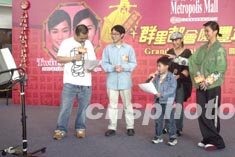 小朋友上臺獻唱「風箏與風」阿Sa輕拍他的頭以示鼓勵。