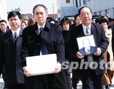 二月二十日,世界著名高能物理學(xué)家袁家騮教授的骨灰,在其親屬及江蘇省太倉(cāng)市官員、太倉(cāng)市明德中學(xué)代表的護(hù)送下,從北京運(yùn)抵故鄉(xiāng)太倉(cāng)安葬。當(dāng)?shù)孛鞯轮袑W(xué)的學(xué)生前往迎接。袁先生生前曾先后捐助明德中學(xué)五百余萬(wàn)元,幫助明德中學(xué)建起了科技樓,明德樓。作者:王大經(jīng)