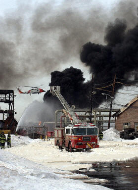 圖文詳訊:美國紐約州一家煉油廠因爆炸引發(fā)大火