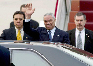 23日下午,美國(guó)國(guó)務(wù)卿鮑威爾乘坐的飛機(jī)抵達(dá)北京首都國(guó)際機(jī)場(chǎng),開(kāi)始對(duì)中國(guó)進(jìn)行訪(fǎng)問(wèn)。鮑威爾此行重點(diǎn)將是朝核、伊拉克問(wèn)題。