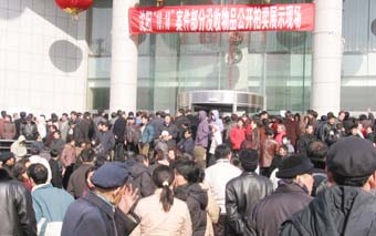 今天,為期六天的“慕馬腐敗大案”贓物拍賣預覽落幕,估計共有近十萬沈陽市民趕到展出現(xiàn)場“金劍大廈”,涌進面積不大的幾個展廳,可以用“人潮洶涌、比肩接踵、絡繹不絕”來形容,人數(shù)之多大大超出舉辦者的意料。