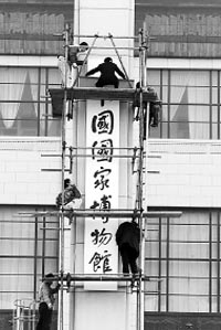 據(jù)國家文物局專電,2月28日上午10時,將隆重舉行由江澤民主席題寫的“中國國家博物館”牌匾掛牌儀式。同時,中國國家博物館的改擴建工程已經(jīng)國務(wù)院批準(zhǔn)立項。中國國家博物館將建設(shè)成為一個與中國這樣一個大國地位相稱的,與中華民族悠久歷史和燦爛文明相稱的,與蓬勃發(fā)展的社會主義現(xiàn)代化事業(yè)相稱的,與廣大人民群眾日益增長的精神文化需求相稱的具有國際先進水平的博物館。