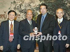 中國(guó)國(guó)務(wù)院僑辦副主任許又聲二十八日在北京會(huì)見(jiàn)以會(huì)長(zhǎng)羅少榮(左二)為首的澳門歸僑總會(huì)訪問(wèn)團(tuán)。作者:滿會(huì)喬