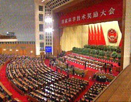 獎勵大會由中共中央總書記胡錦濤主持,國務院總理朱镕基代表中共中央、國務院發(fā)表講話,國務院副總理李嵐清宣讀《國務院關(guān)于二00二年度國家科學技術(shù)獎勵的決定》,吳邦國、溫家寶、曾慶紅、李長春等出席大會。