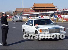 各國駐華使節(jié)三月三日應邀列席全國政協(xié)十屆一次會議的開幕式,伊拉克駐中國大使的專車駛過天安門赴會。作者:賈國榮