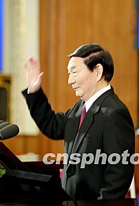 今天,當朱镕基的報告結束時,全場掌聲再次響起,一直到他走回主席臺落座后仍不停息并更加熱烈。掌聲中,朱镕基站起身來,向會場左右鞠躬示意。