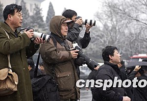 組圖:記者在風(fēng)雪中守望人大代表