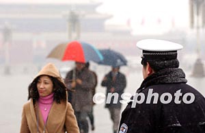 圖:“兩會(huì)”委員、代表冒雪赴會(huì)