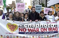 日本民間團體八日在東京市中心再次舉行大規(guī)模的反戰(zhàn)游行,反對美國準備對伊拉克發(fā)動戰(zhàn)爭。作者:陶光雄