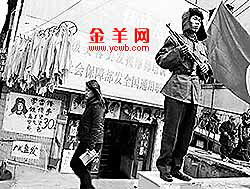 該男子身著“軍裝”,頭戴“軍帽”,手持“沖鋒槍”,背插紅旗……筆挺地站在一張板凳上,極力模仿雷鋒的模樣,招來(lái)路人一片嘲笑和指責(zé)。