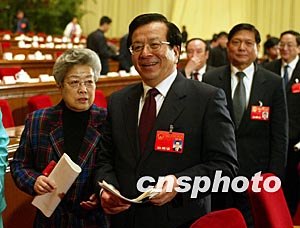 第十屆全國人民代表大會第一次會議第四次全體會議十一日在北京人民大會堂舉行,中共中央政治局常委曾慶紅與國務(wù)委員吳儀出席時一起交談。作者:毛建軍