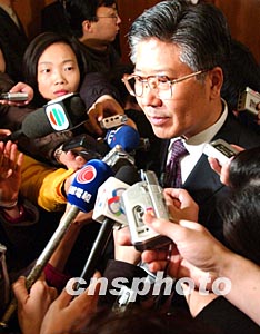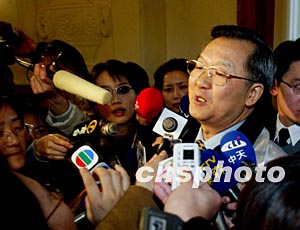 再次出任衛(wèi)生部部長的張文康十七日就非典型性肺炎回答港臺(tái)記者提問。作者:鄭萍萍
