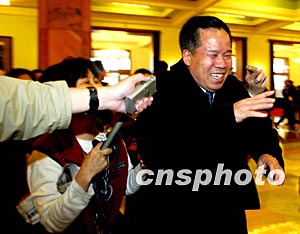 十七日出任外交部部長的李肇星,被記者圍堵在會(huì)場門口。作者:鄭萍萍