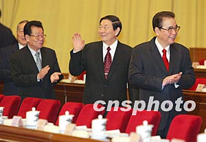 圖:李鵬、朱镕基、李瑞環(huán)出席人大閉幕會