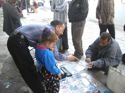 巴格達(dá)市民在買盜版美國大片VCD,大概4元人民幣一張。(春風(fēng))